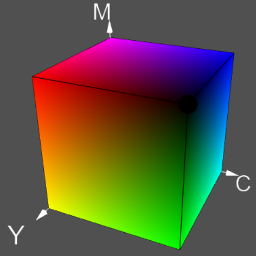 Der CYM(K)-Farbwürfel hingegen hat seinen Ursprung bei Weiß, und CYM(255,255,255) stellt Schwarz da. Dieser Farbraum wird meistens bei Subtraktiven Prozessen wie beim Drucken verwendet.