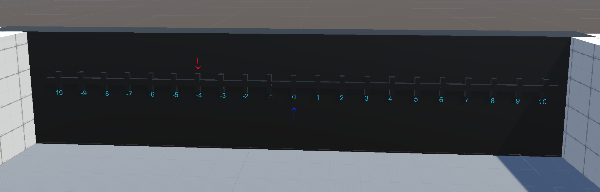 Bei meinem VR-Game handelt es sich um ein Spiel welches dem Benutzer den Umgang mit den Natürlichen Zahlen erleichtern soll. Hierzu soll er simple Additions und Subtraktionsprobleme in VR lösen. Auf der einen Seite des Raums wird ihm ein Zahlenstrahl angezeigt auf welchem zwei Zahlen mit Pfeilen markiert sind.