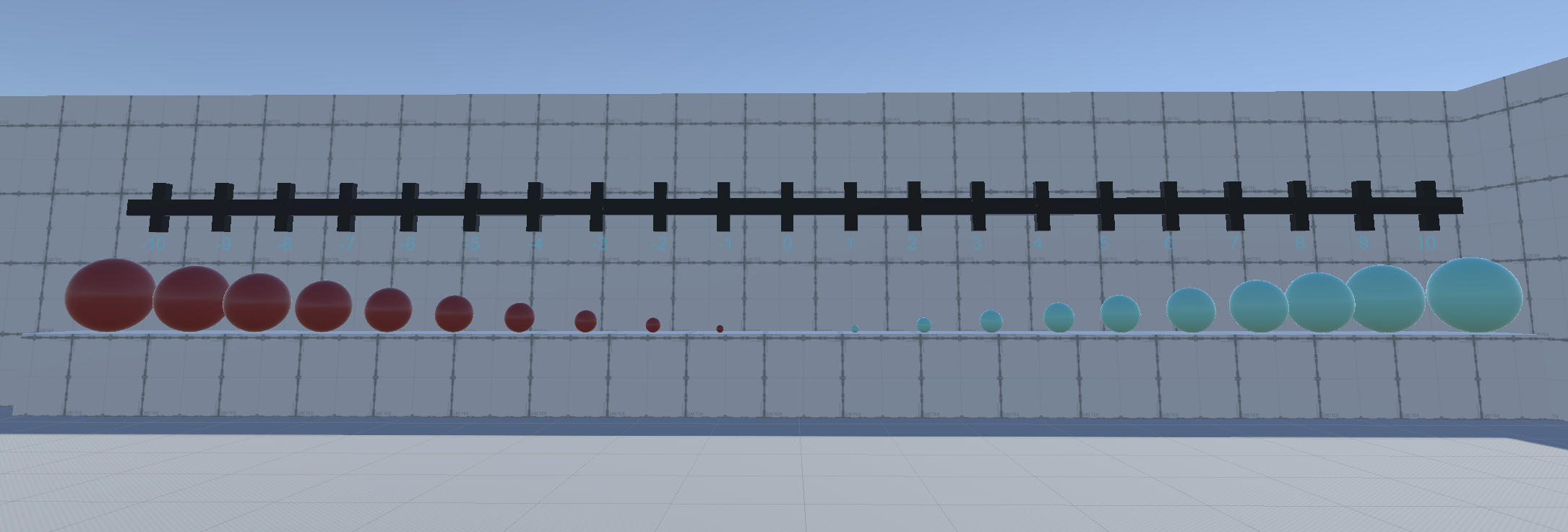 Bei der roten Zahl handelt es sich um die Zielzahl. Diese soll der Nutzer versuchen zu erreichen. Die blaue Zahl markiert die aktuelle erreichte Zahl. Um diese nun zu verändern liegen Kugeln mit verschiedenen Größen und Farben auf einem Tisch. Die Größe soll dabei den absoluten Wert und die Farbe das Vorzeichen der Repräsentierten Zahl angeben.