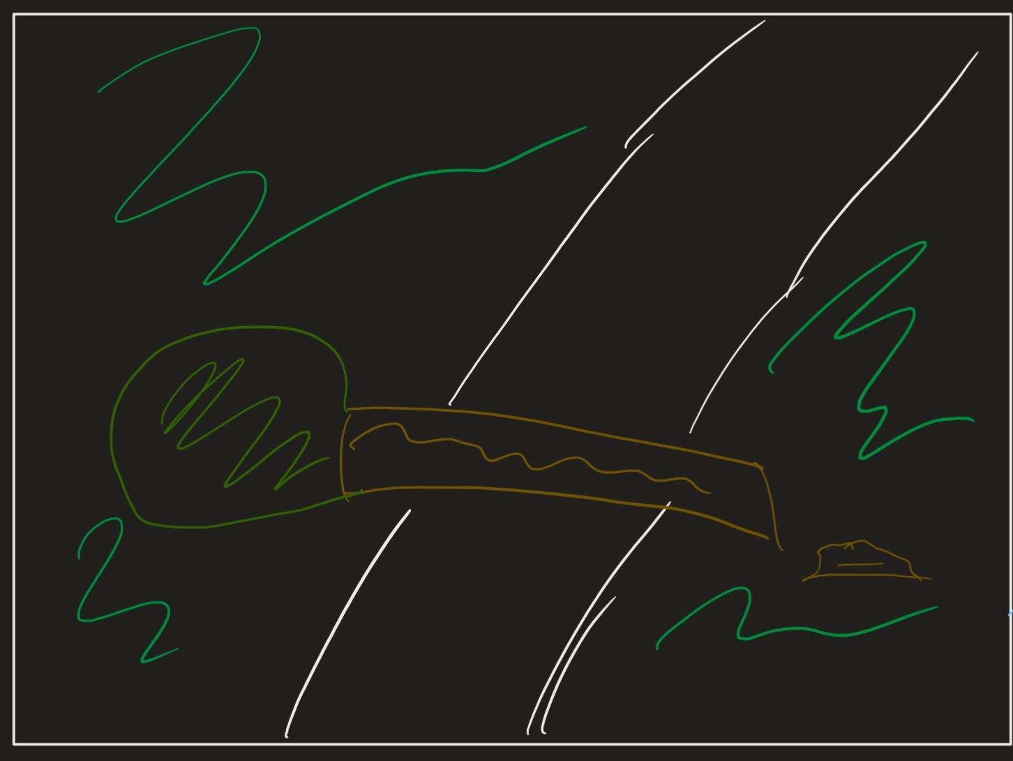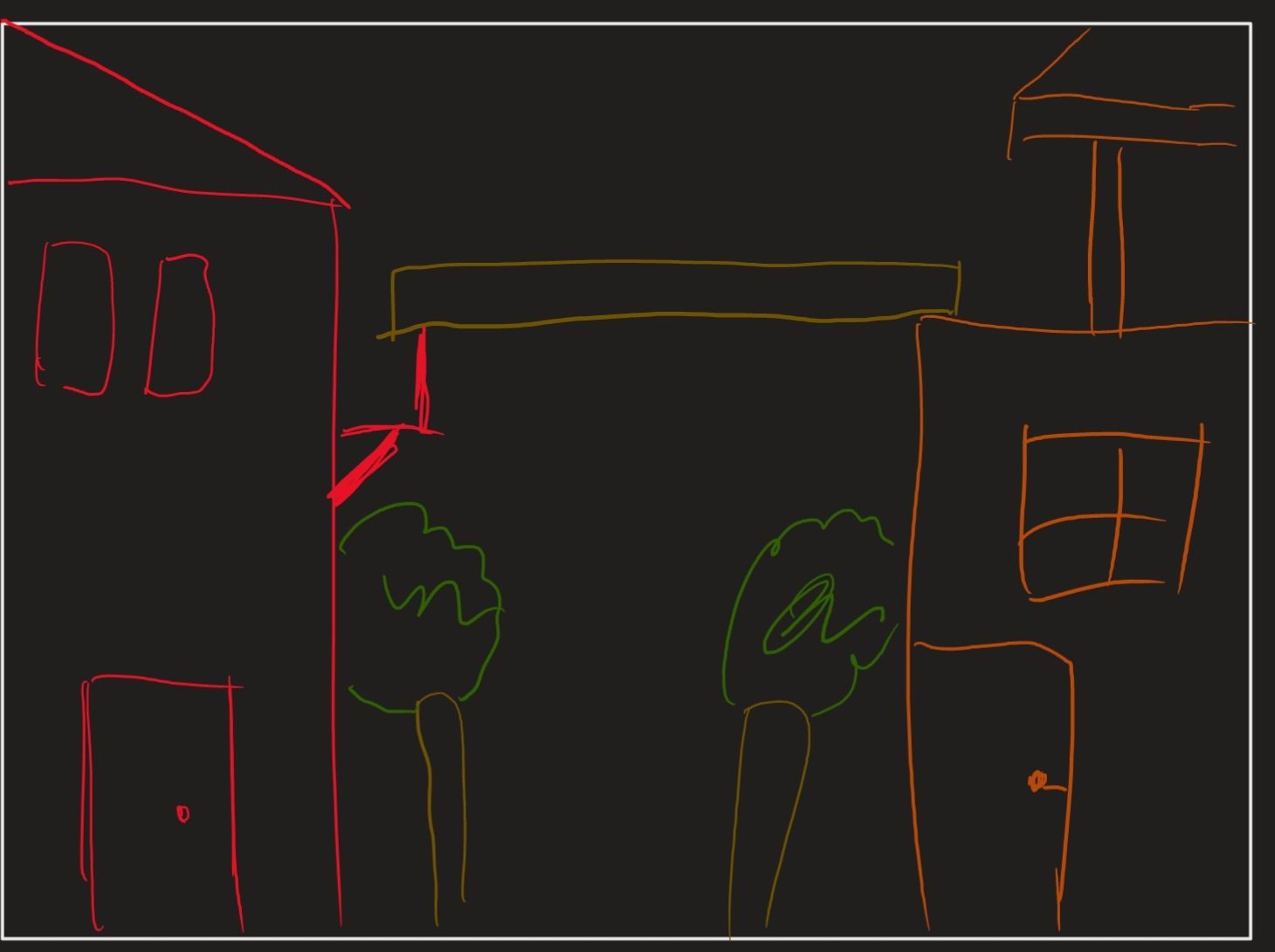 Die grundlegende Idee unseres Spiels ist eine Mischung aus Parkour-Spielen wie Mirror's Edge und einem zeit-basierten Geschicklichkeitsspiel. Der Spieler (das Sandmännchen) muss in einer gewissen zeit alle Häuser auf einer (möglicherweise zufällig generierten) Karte erreichen. Dabei können ihm Hindernisse wie umgefallene Bäume (Skizze 1) oder kaputte Brücken (Skizze 2) den weg Blockieren. Es können allerdings auch positive Gegenstände auftauchen, wie eine Planke die die Dächer von 2 Häusern zur einfachen Navigation verbindet (Skizze 3).